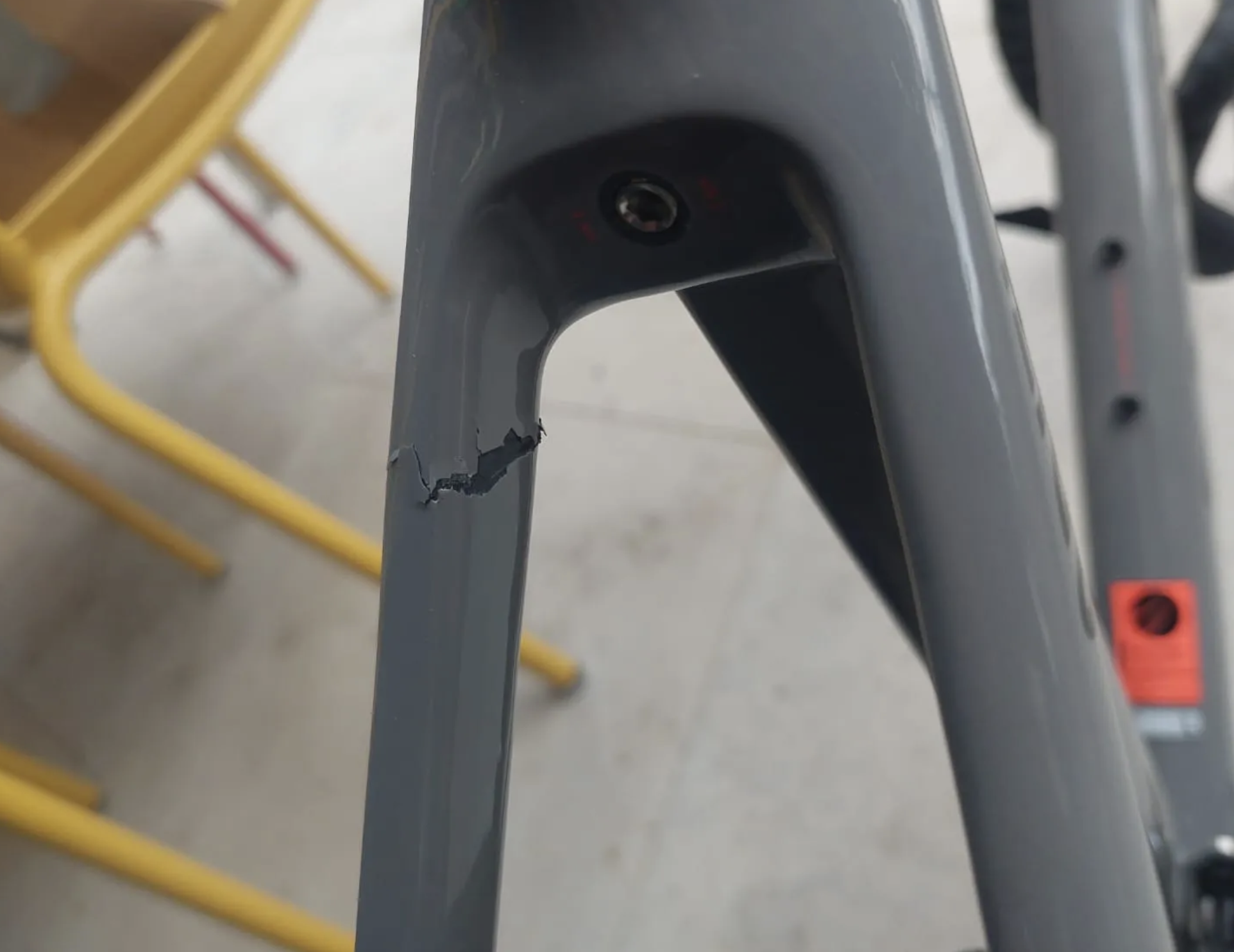 Gallery Examples of carbon bike frame repairs performed by CarbonWeldFix. Below you can see typical damage and professional carbon repair results for road, gravel and MTB frames.